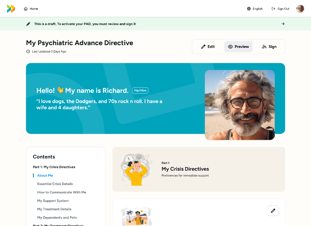 Note: This project is in a pilot phase and is not yet available throughout California. The Commission for Behavioral Health has approved this pilot initiative to develop web-based Psychiatric Advance Directives (PADs). Participating counties have identified specific populations for the pilot phase of the project. The groups selected align with county Behavioral Health Plans. Program details, eligibility, and scope may vary by location. Learn more about the pilot counties. >